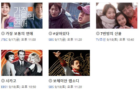 2021년 추석특선영화TV 편성표 TV채널 종합 (출처-네이버)